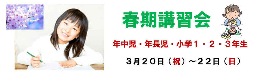 いよいよ新学年の始まりです。幼児の学習会では春休みに楽しい企画いっぱいの講習会を開校いたします。